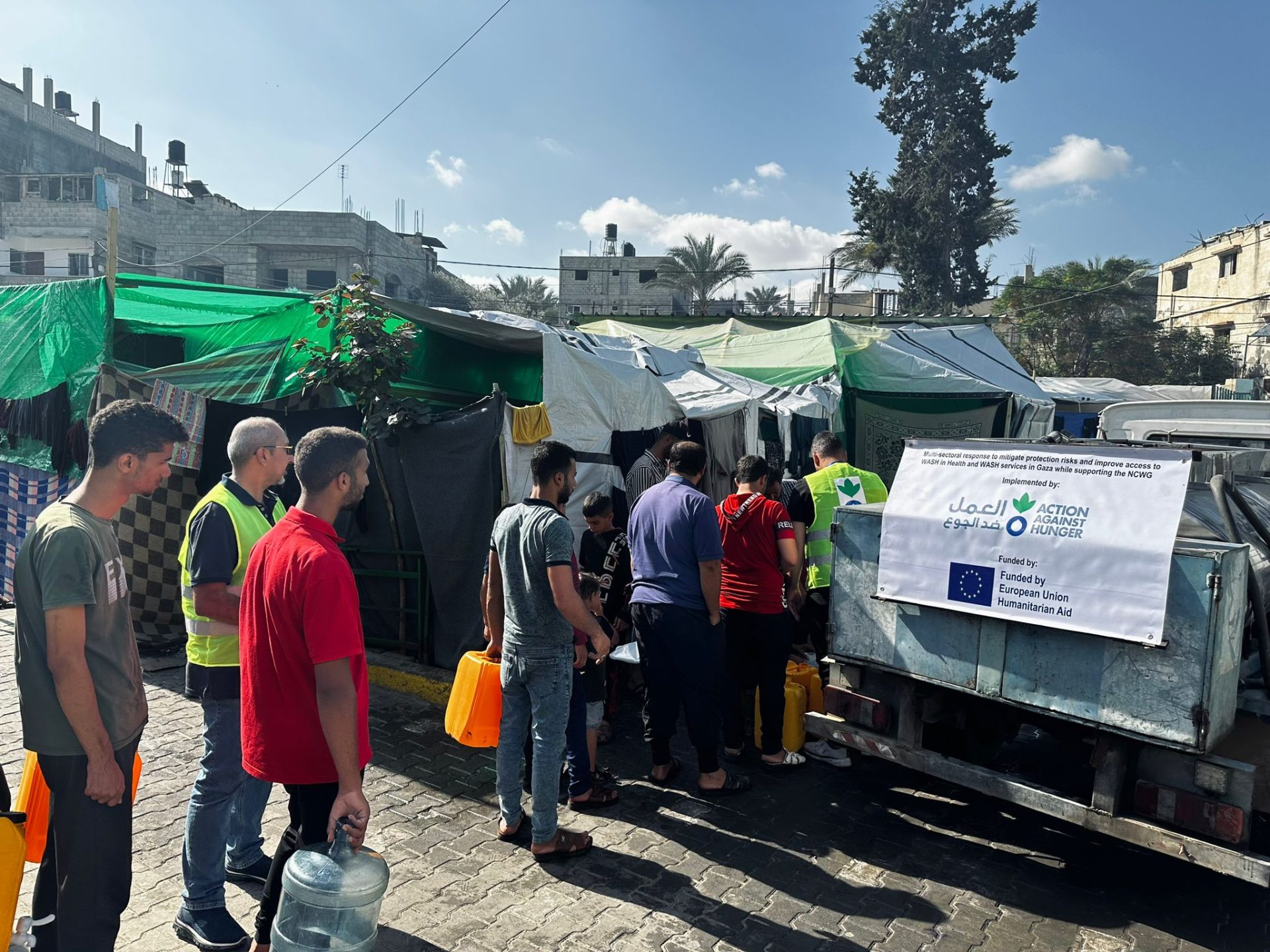 Action Against Hunger has distributed 5,200 litres of clean water to around 1,700 people sheltering at a primary school in Gaza City, an average of roughly three litres per person. While these provisions curb the risk of fatal dehydration for civilians in Gaza, water supplies are running dangerously low since the conflict began on 7th October.