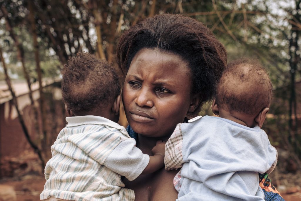 Dorcas, holding her 7-month-old twins Kabongo and Mpongo.