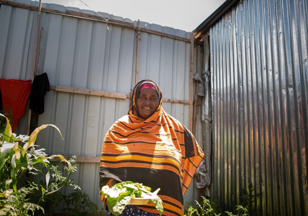 But there is hope. Despite the challenges of being displaced by conflict and drought, Safiya tends to her small kitchen garden in the IDP camp. With the knowledge gained from a nutrition programme run by Action Against Hunger, she now grows vegetables and can provide nutritious meals for her children. Her garden has become a source of nourishment and a symbol of hope for her family.