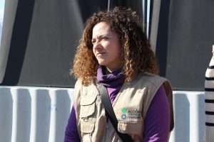 Silvia Rodríguez, Psychosocial Expert with Action Against Hunger in front of a warehouse under construction delivered by the NGO to its partner entity, Support to Life, in the province of Hatay (Turkey) © Ana Mora Segura / Action Against Hunger