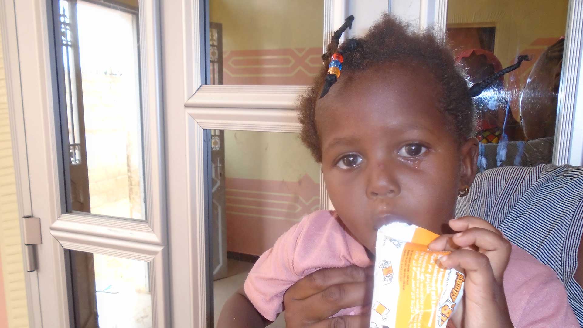 33-year-old Aissatou sells medicine at the health centre. She’s also a community health volunteer, helping children to gain weight, screening children for malnutrition and helping families to treat malnourished children through cookery demonstrations.